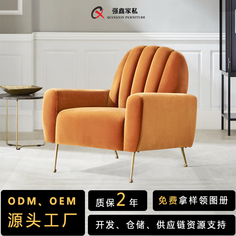 Ins B & B sofa ringan Nordik santai selebriti Internet flanel baja tahan karat disikat kursi tunggal sofa A1TP003