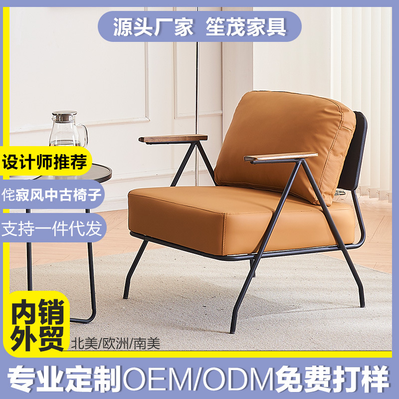 Kafe Kayu Solid Sederhana Gaya Italia Kursi Sofa Santai Hotel Kamar Model Desainer Kursi Tunggal Mewah Ringan Lembut