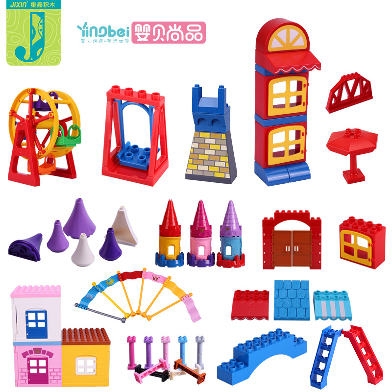 Kompatibel dengan Lego partikel besar merakit blok bangunan aksesoris anak-anak pendidikan awal mainan konstruksi perakitan blok bangunan potongan yang tersebar