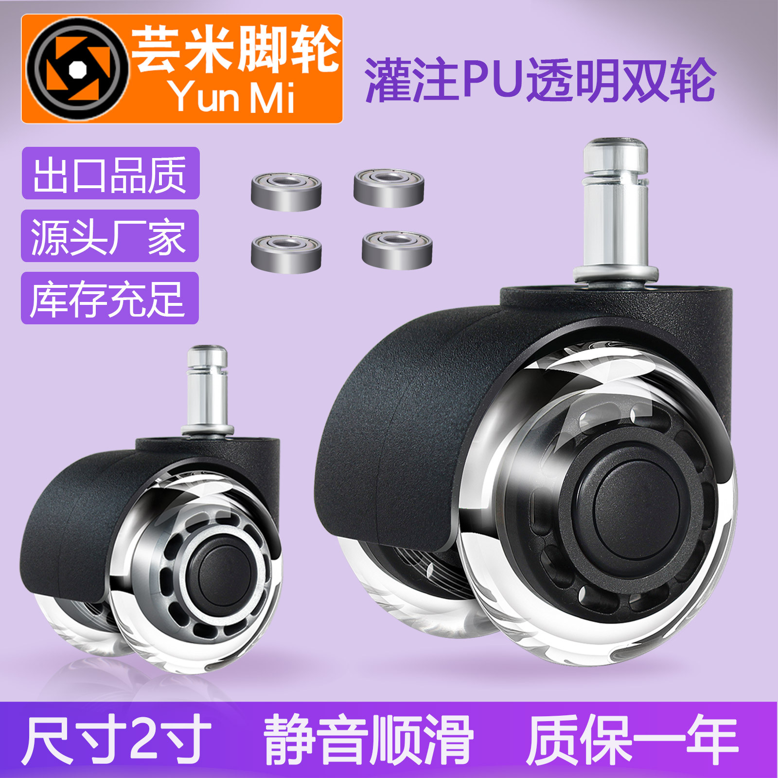 Diskon besar ekspor roda ganda transparan 2 inci Kursi Kantor roda universal roda circlip kastor e-sports roller pulley bisu