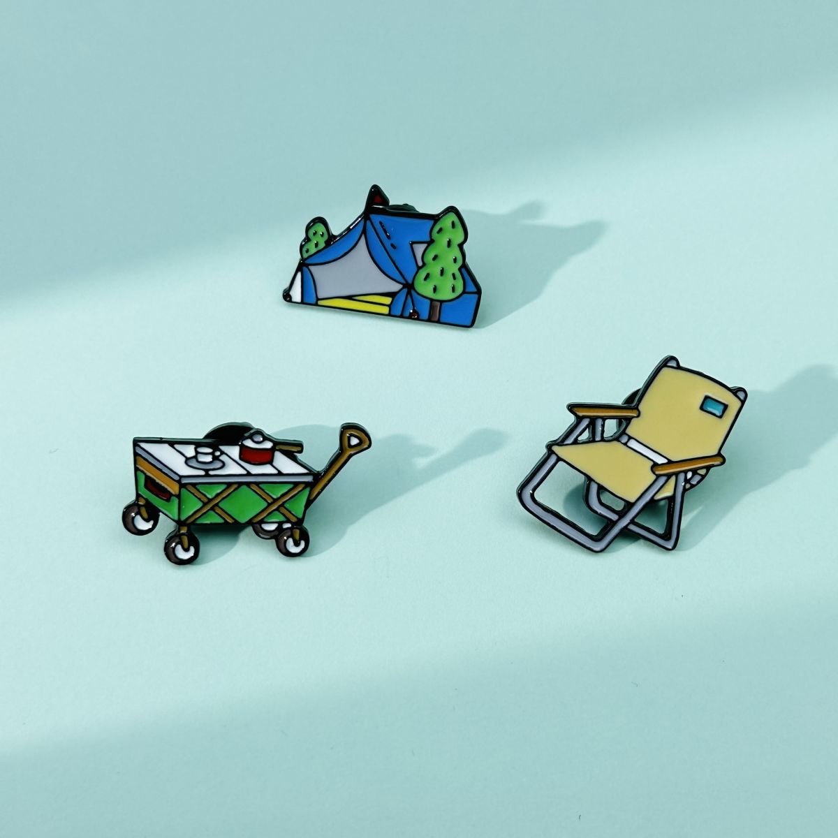 Bros elemen perjalanan kreatif, tenda hutan malas desain bentuk troli piknik, aksesori lencana logam paduan