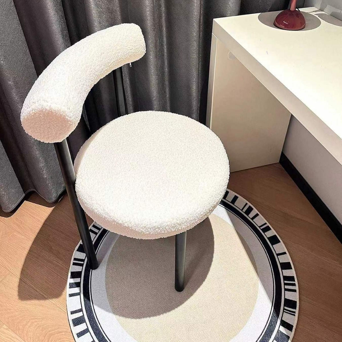 Kursi rias, sandaran tangan gaya krim sederhana, bangku penata logam subnet merah duduk panjang nyaman lampu rumah tangga mewah