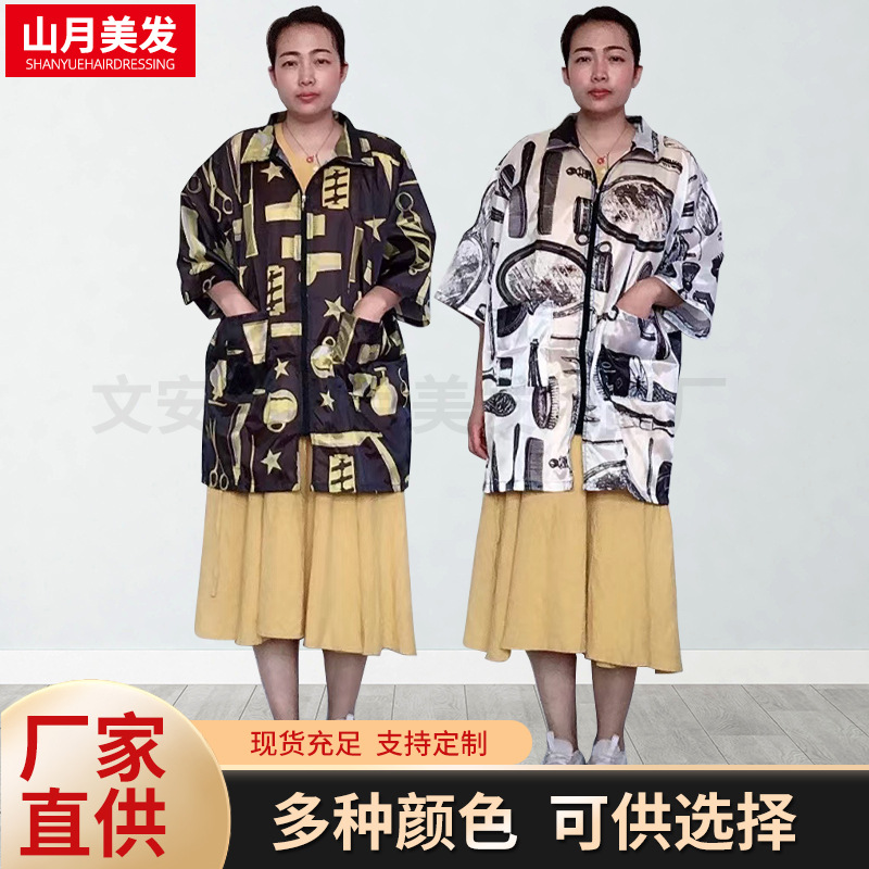 Salon eropa dan amerika dengan ritsleting celemek penata rambut perm celup rambut antilengket pola rambut cetak coverall celemek