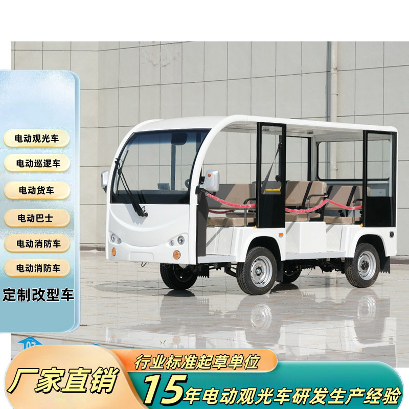 Kendaraan wisata listrik 8 tempat duduk, semi-tertutup, untuk tur pemandangan, model kendaraan khusus Yichang Xinwei YCT, kapasitas 8 orang, pasokan langsung dari pabrik.