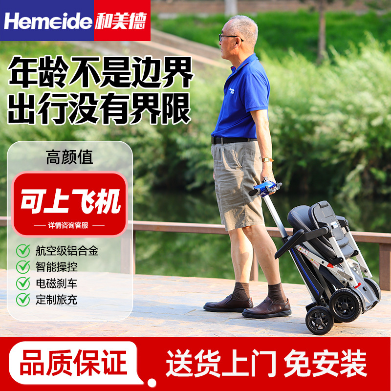 Hemei skuter listrik lipat portabel, M2020 skuter listrik empat roda ringan untuk orang tua