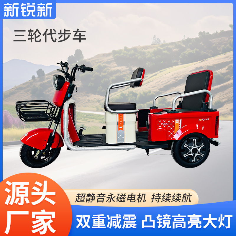 Sepeda roda tiga listrik dewasa, sepeda rumah tangga dua baris tiga roda skuter otomotif santai perjalanan listrik roda tiga