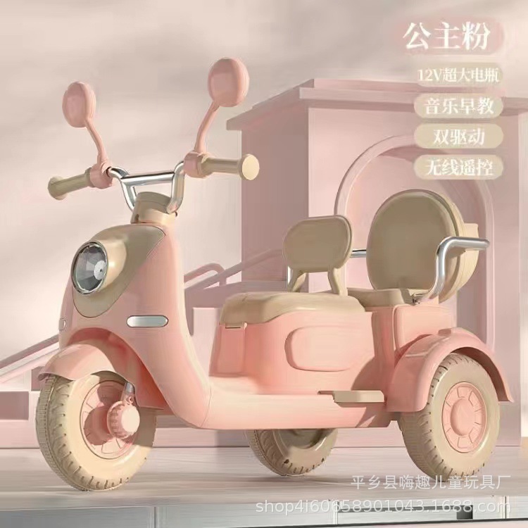 Sepeda motor listrik anak-anak sepeda roda tiga, dengan remote kontrol pria dan wanita bayi dapat duduk ganda anak-anak pengisian mobil mainan listrik