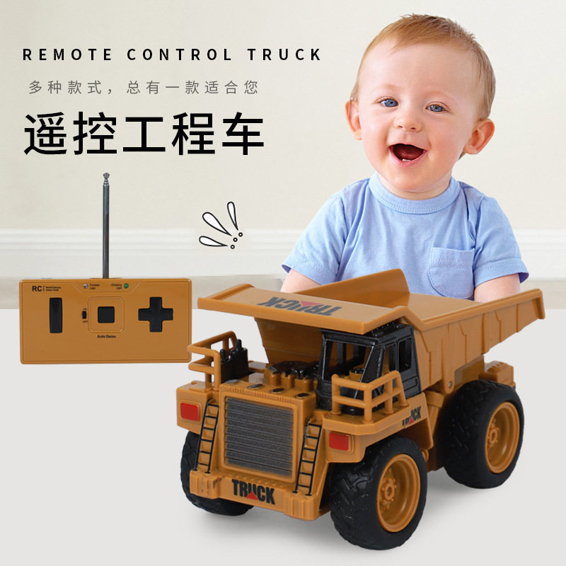 Mainan model elektrik anak laki-laki, mobil kendali jarak jauh empat arah CPC lintas batas, kendaraan listrik penggali teknik bulldoser