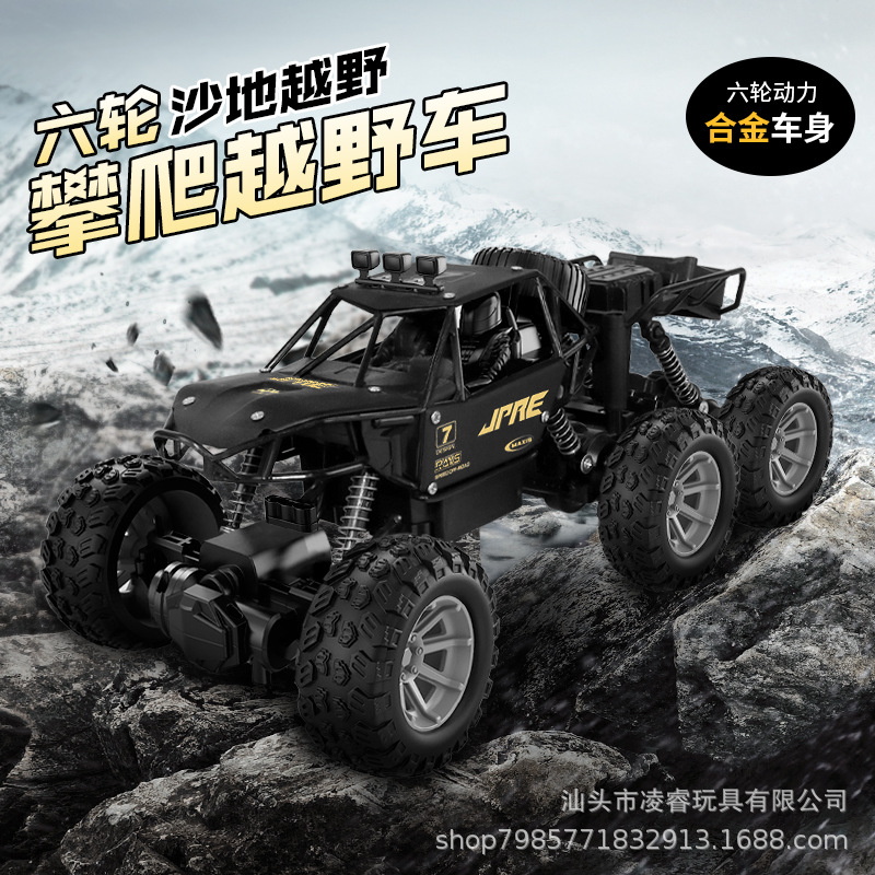 Mobil mainan anak-anak laki-laki, mobil kendali jarak jauh mendaki enam roda Aloi 1:18, model kaki besar elektrik, mobil off-road