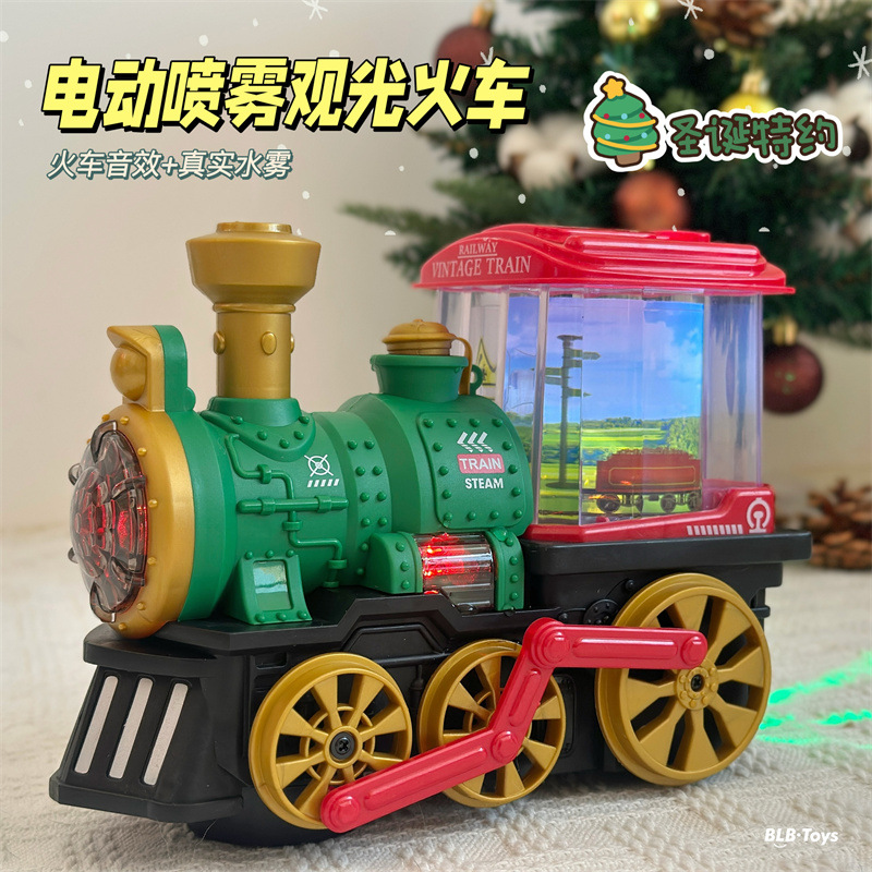Kereta Uap Listrik Roda Universal Semprot Lokomotif Model Mainan Anak Laki-laki Mobil Bemper 1-3 Tahun