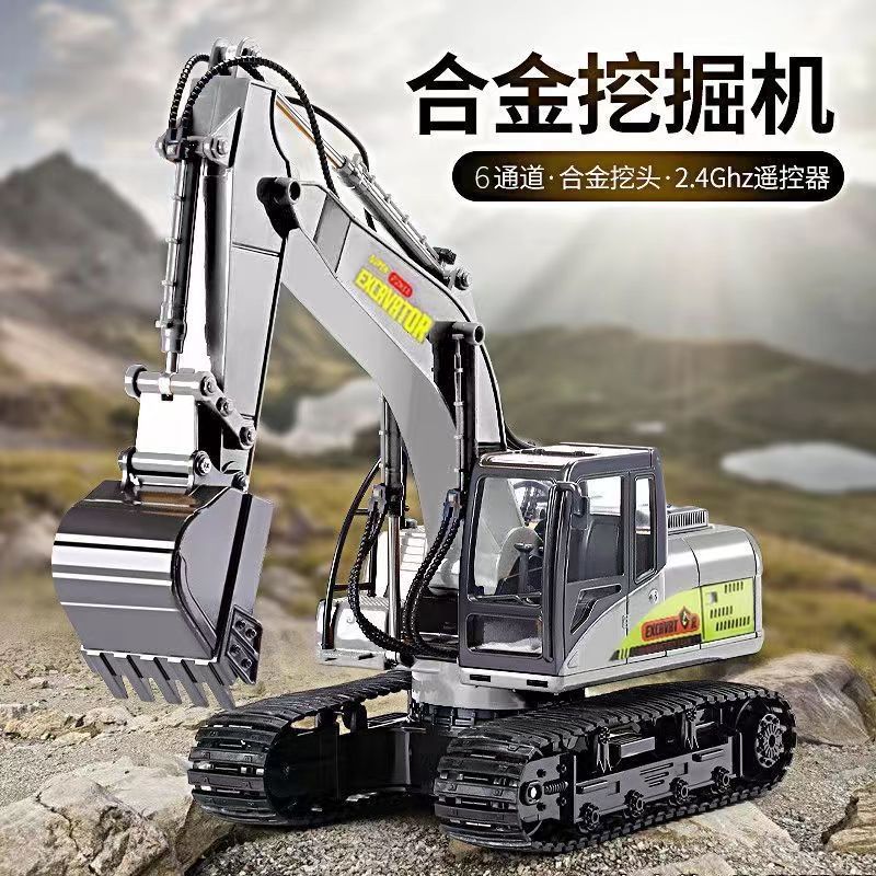 Mobil mainan remote control anak laki-laki, mobil mainan teknik penggali elektrik simulasi logam paduan besar lintas batas