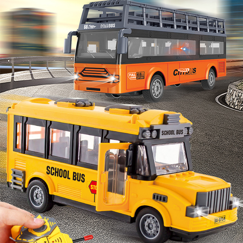Mainan RC empat arah cahaya, mobil remote control tanpa kabel, simulasi ambulans elektrik, model bus sekolah anak-anak