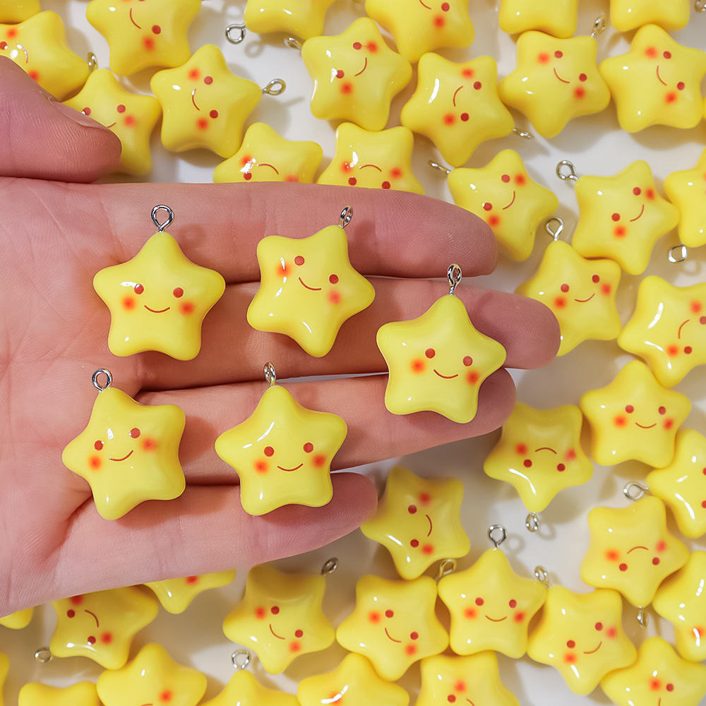 立体可爱黄色笑脸星星五角星吊坠挂件diy钥匙扣挂件包包小挂饰