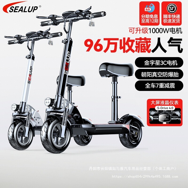 Skuter listrik portabel, peredam guncangan skuter dewasa off-road dengan tempat duduk dapat dilipat