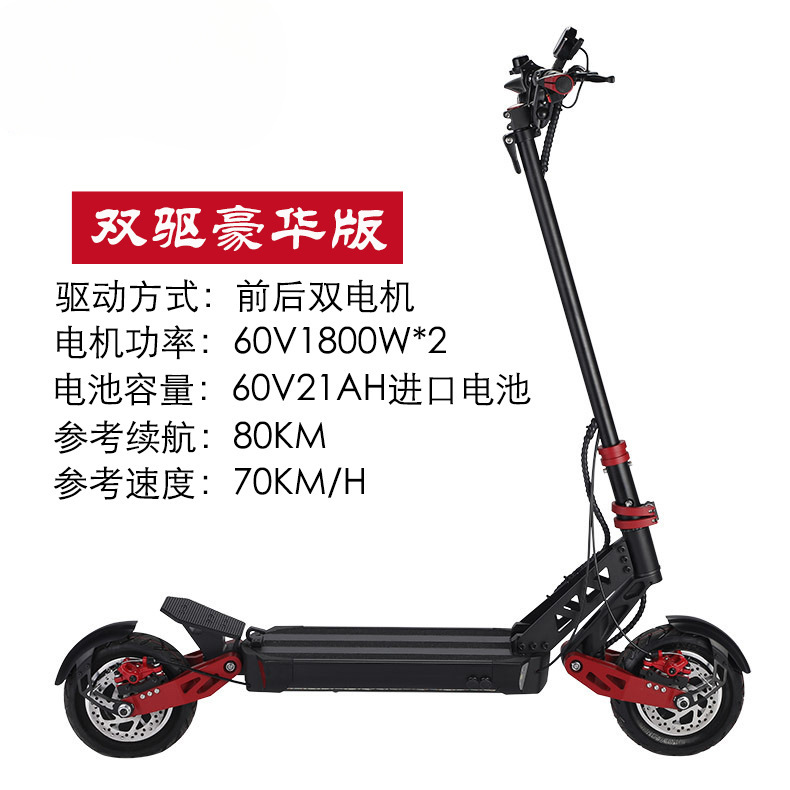 Runtu 10 Inci Dual Drive Off-Road Skuter Listrik Lipat Skuter Mobil Cocok untuk Komuter Kerja Pemuda Dewasa