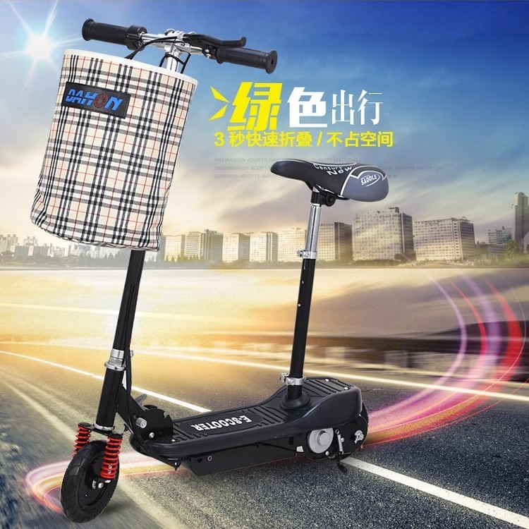 Skuter listrik mini portabel berkendara dua roda, mobil listrik lipat dengan baterai lithium kecil untuk dewasa