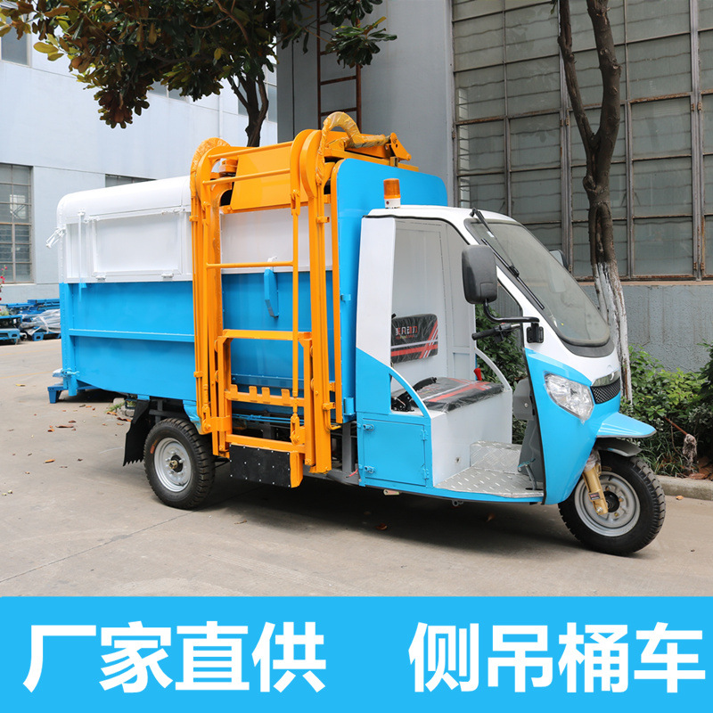 Truk sampah listrik roda tiga, truk sampah dump sampah terpasang di ember truk sampah listrik truk sampah kecil