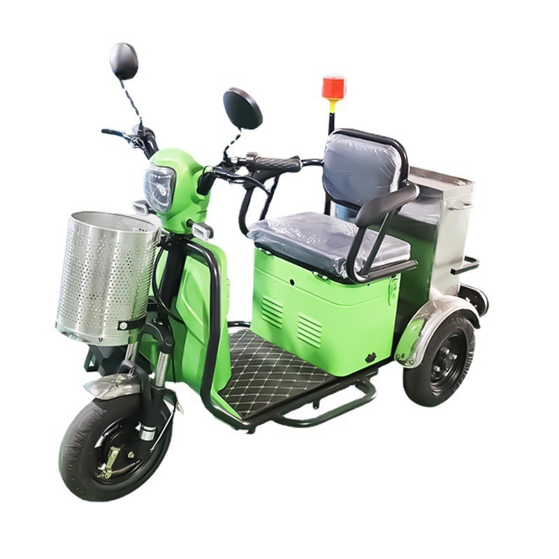 Mobil pembersih sanitasi elektrik kecil, mobil pembersih tiga roda sanitasi, mobil komunitas sekolah tiga roda penyortir sampah