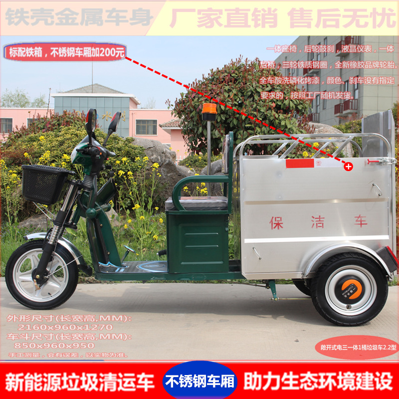 Mobil Sanitasi Ember Ganda Kaya Mobil Stainless Steel Mobil Roda Tiga Sepeda Motor Pengawet Sampah Pembersihan Sepeda Roda Tiga Listrik