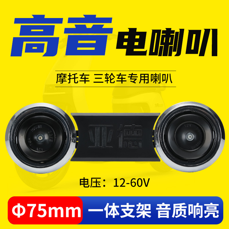 亚德三轮车摩托车电动车通用带防护罩12V防水盆型高低音喇叭