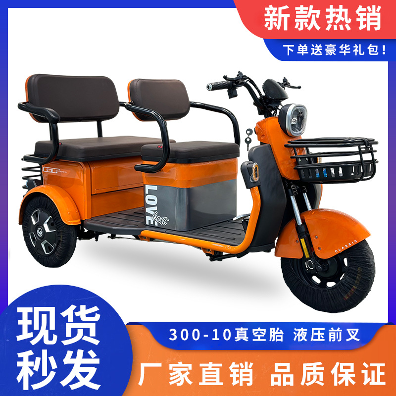 Sepeda roda tiga listrik kecil ringan, sepeda roda tiga untuk orang tua, pick-up rumah, mobil baterai skuter untuk keluarga tiga