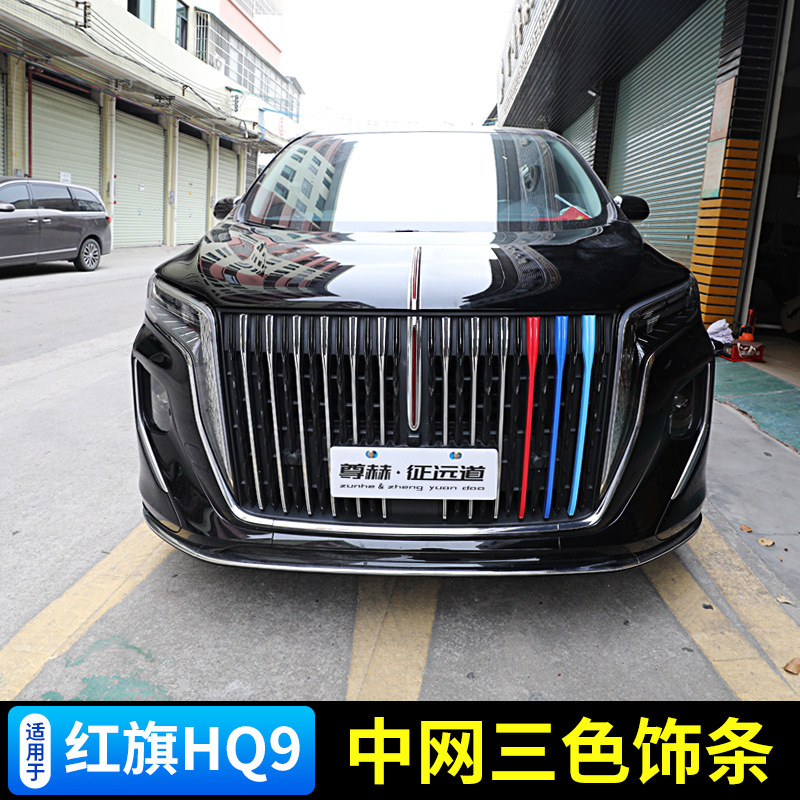 Berlaku untuk 22-23 bendera merah HQ9 strip dekoratif jaring tengah Stiker kisi wajah depan tiga warna strip terang aksesori modifikasi jaring Tengah