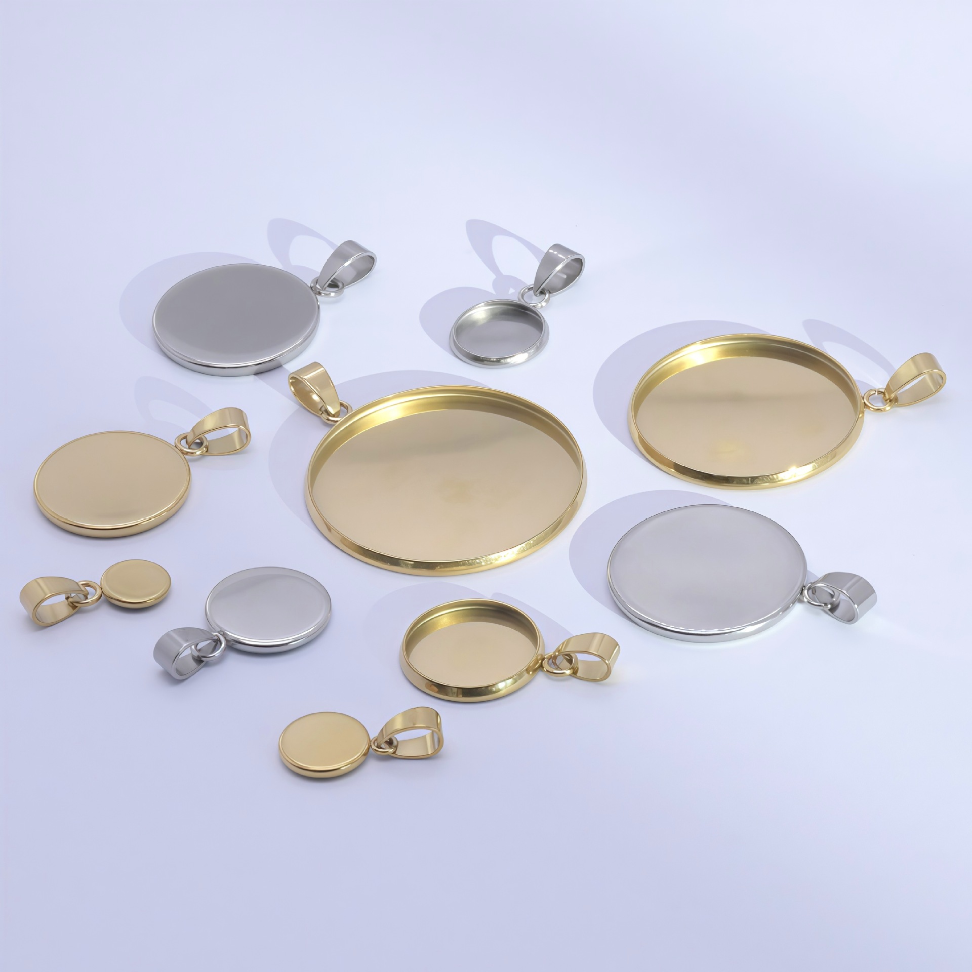 Grosir baja nirkarat multi-spesifikasi DIY waktu permata cakram bawah dukungan liontin hewan peliharaan tag kalung aksesoris perhiasan