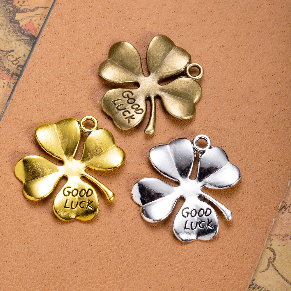 Aksesoris perhiasan DIY 27MM rumput keberuntungan GOODLUCK paduan empat daun semanggi liontin