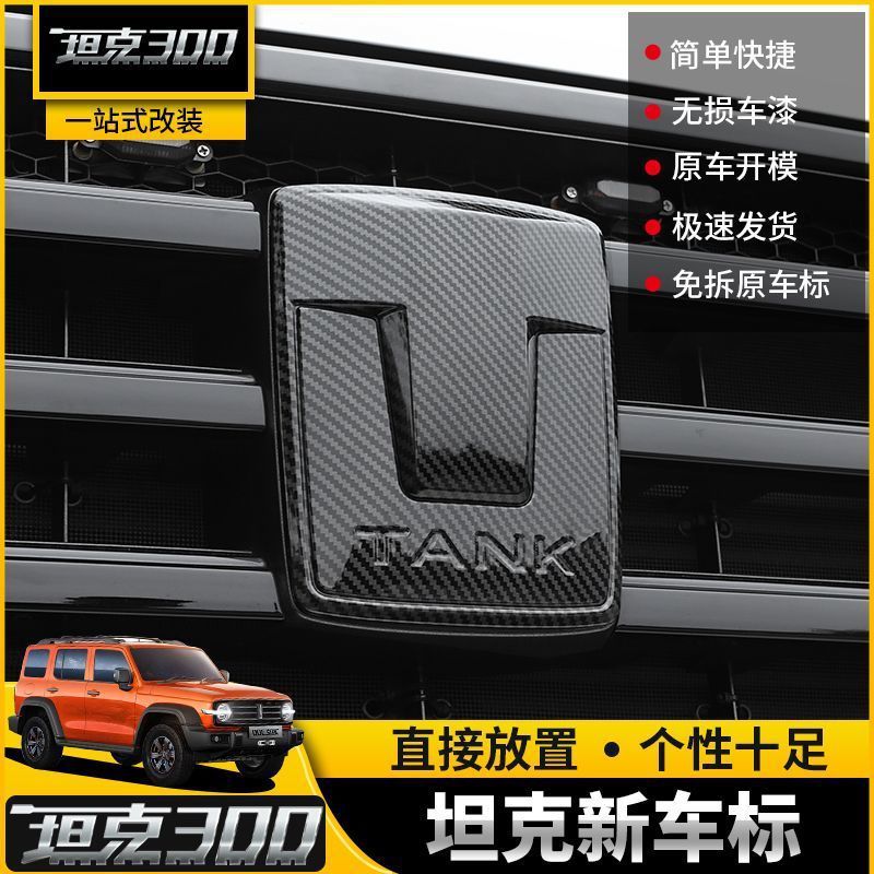 Tank 300 logo mobil modifikasi logo mobil baru modifikasi logo hitam serat karbon jaring tengah roda kemudi hub logo eksterior aksesoris patch