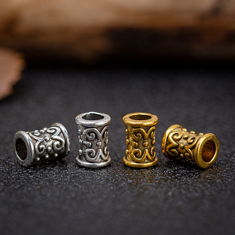 Grosir Aksesori Perhiasan emas perak diukir paduan manik-manik barel lubang besar manik-manik spacer panjang