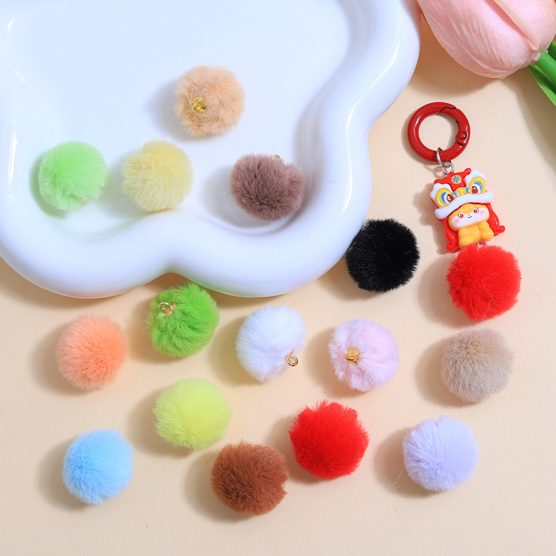 Liontin bola bulu kecil warna-warni baru buatan tangan diy aksesori perhiasan kreatif liontin gantungan kunci bahan grosir