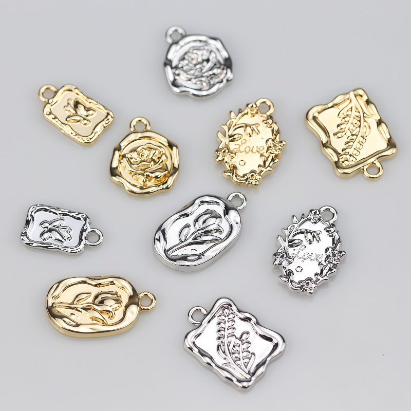 Aksesoris perhiasan diy Korea 14k emas asli 26 huruf liontin gelang tali kulit kalung bahan liontin aksesoris grosir