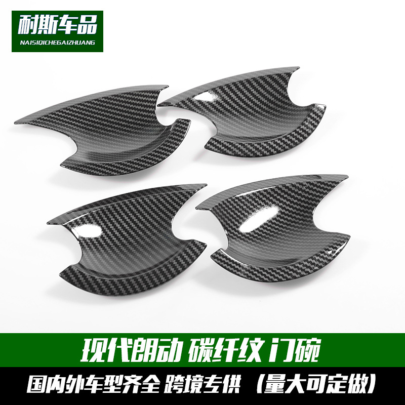 Cocok untuk Langdong dimodifikasi pintu mangkuk dekoratif cerah strip pola serat karbon patch pegangan pintu