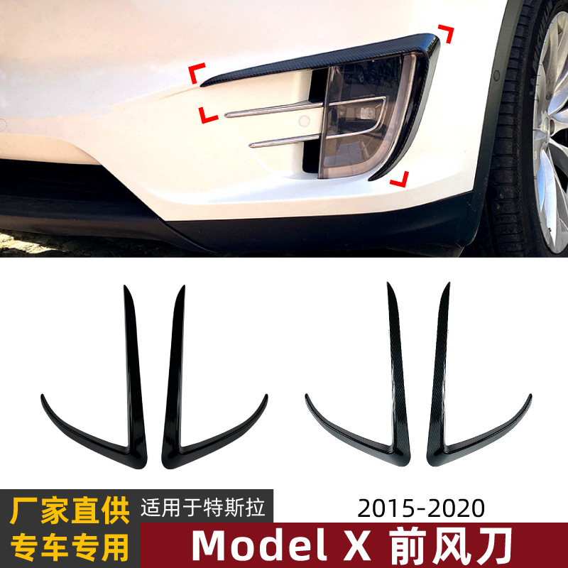 Berlaku untuk Tesla Model X 2015-2020 pisau angin bumper depan bingkai lampu kabut pisau angin depan dekorasi eksterior modifikasi stiker mobil