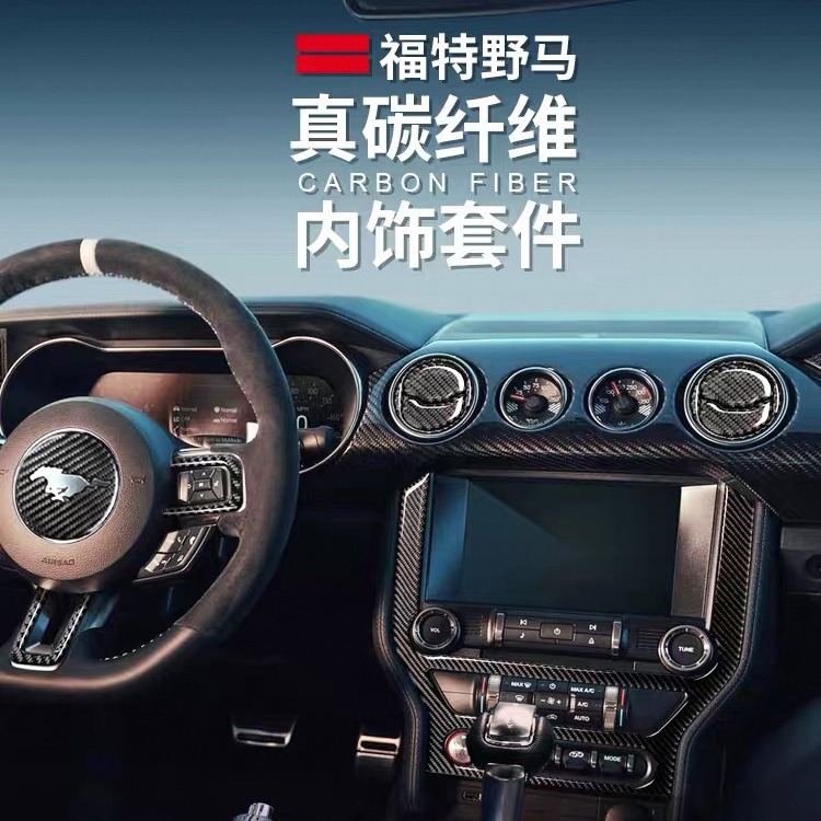 Cocok untuk Ford wild horse mustang serat karbon interior kontrol pusat roda gigi kemudi outlet aksesoris modifikasi