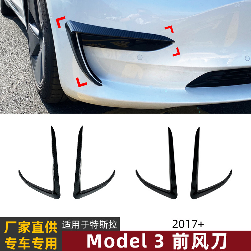 Pisau angin bumper depan, modifikasi dekorasi eksterior mobil Model Tesla 3 2017 +