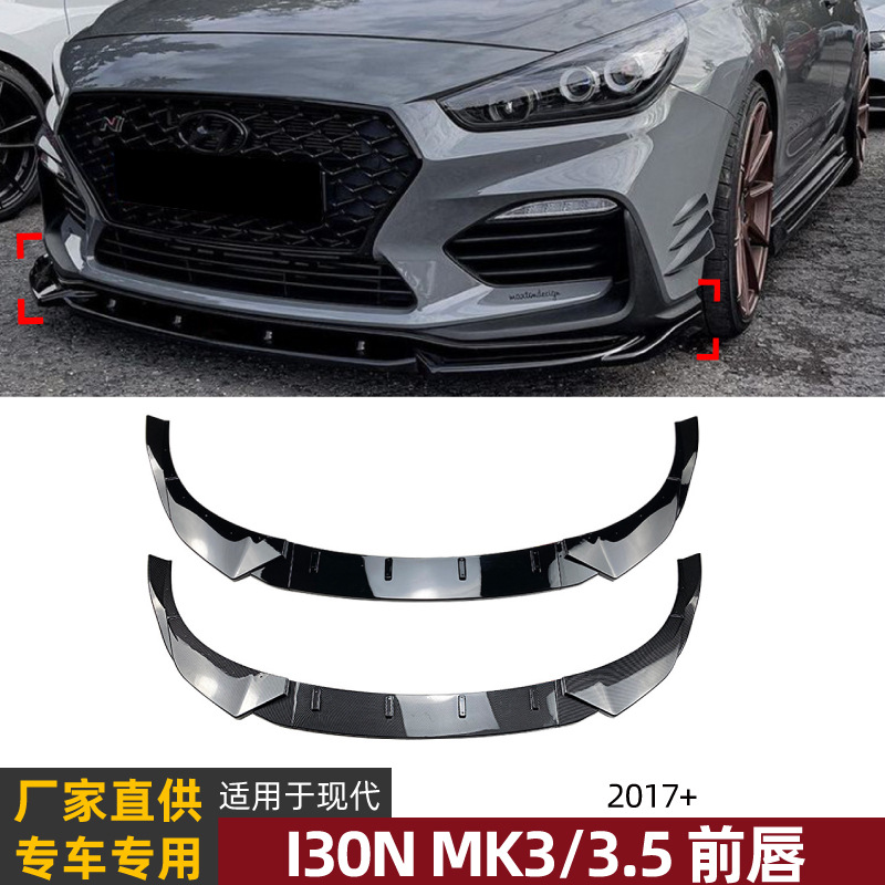 Cocok untuk Hyundai I30N MK3 MK3.5 2017 + bumper depan bibir sekop depan modifikasi dekorasi eksterior