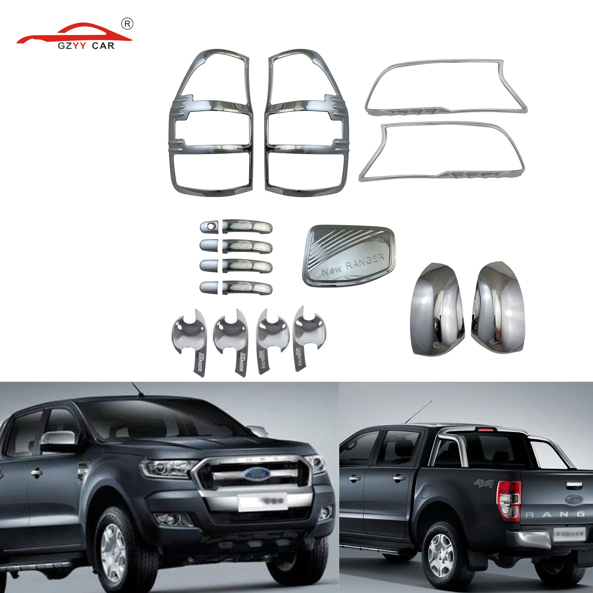 Berlaku untuk ranger 2016 setelan elektroplating, suku cadang dekoratif mobil ABS, penutup lampu belakang eksternal yang dimodifikasi