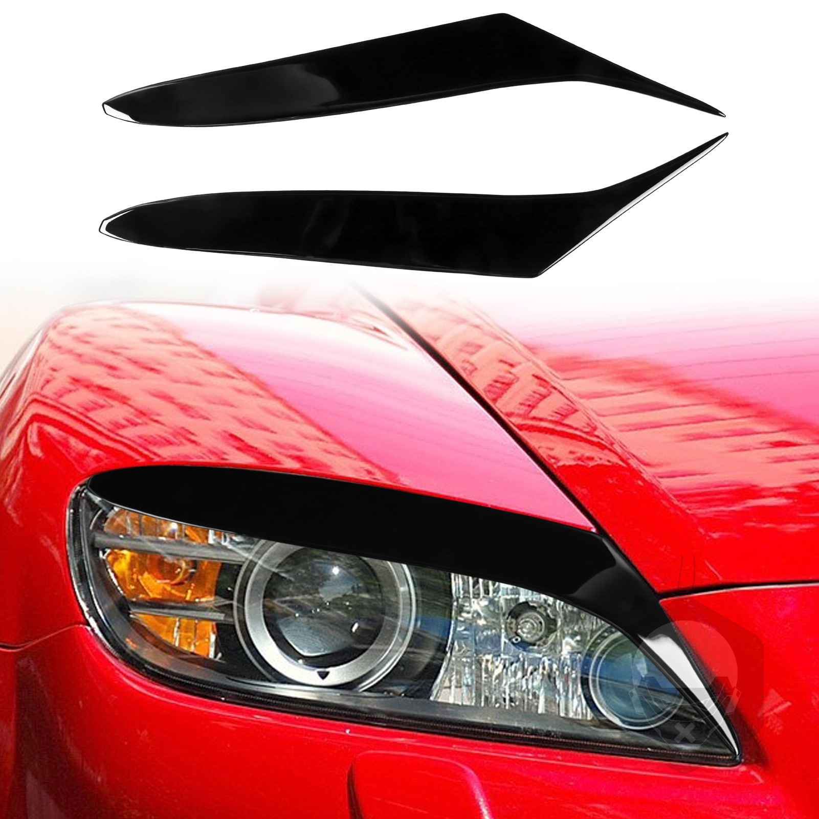 Cocok untuk Mazda RX8 lampu depan alis wajah stiker dekoratif piano hitam dekorasi eksterior mobil aksesoris modifikasi
