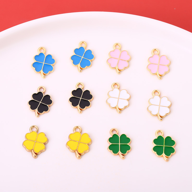 Gantungan kunci anting liontin Aloi Aksesori Perhiasan DIY tetesan minyak semanggi empat