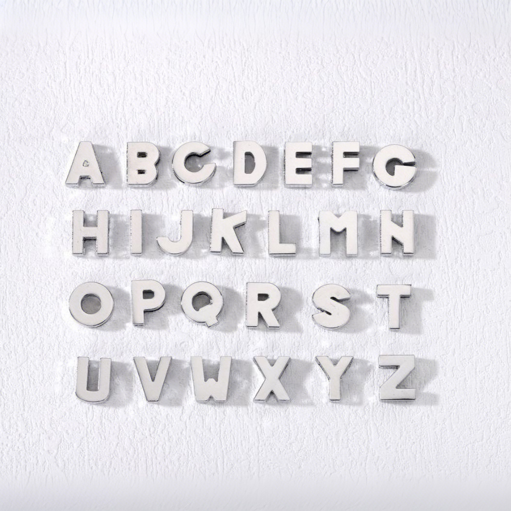 8mm A-Z26 huruf mengkilap dengan tali jam setiap huruf aksesoris pakaian aksesoris tas rantai hewan peliharaan perhiasan DIY