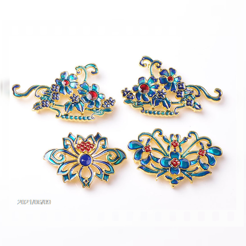 Aksesori mahkota phoenix antik Aksesori minyak tetes Aloi diy baru aksesoris jepit rambut Jingtai biru setengah jadi bunga biru