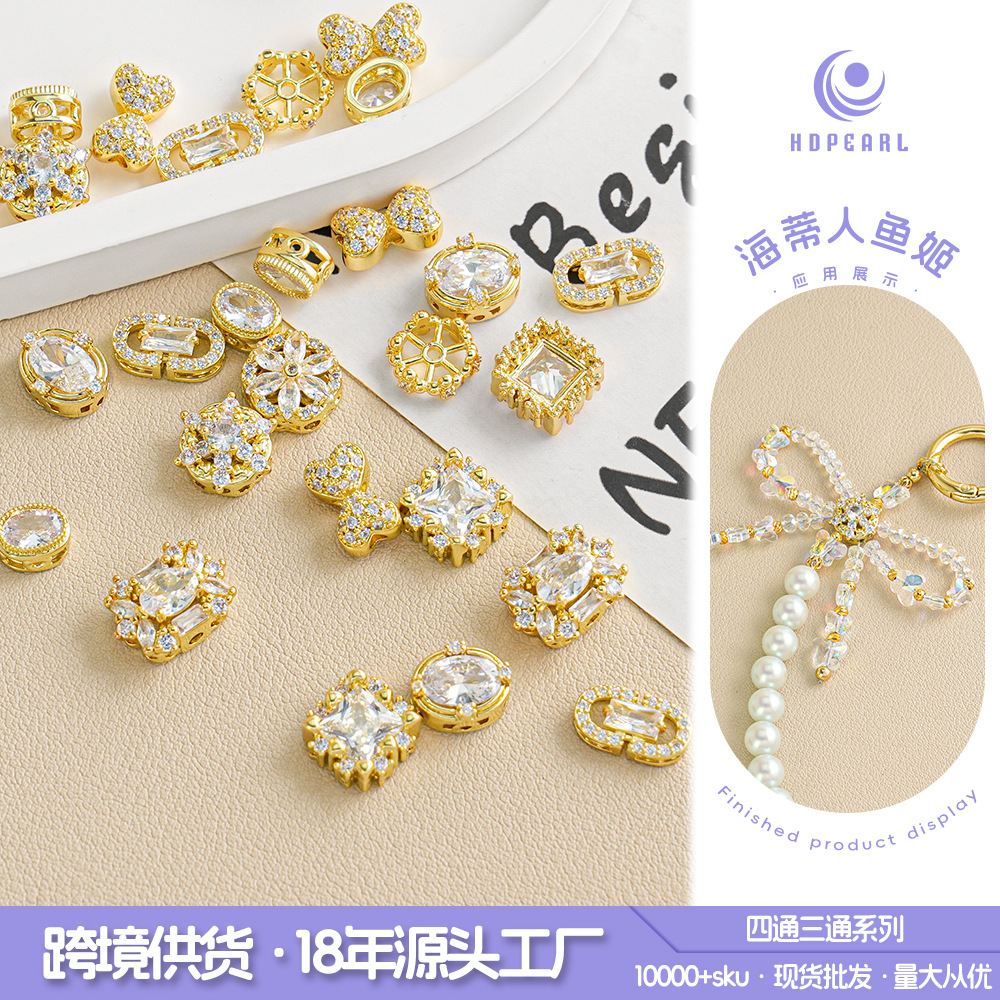 Mewarnai emas kuno bertatahkan mikro semanggi bulat manik spacer kupu-kupu manik-manik longgar diy manik-manik gelang manik-manik bahan Aksesori spacer