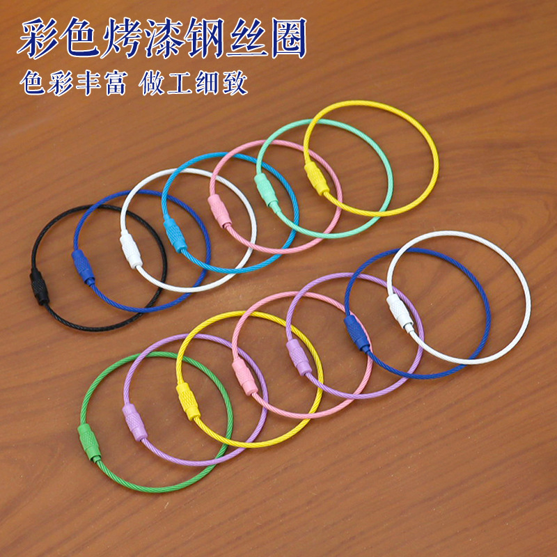 Cincin kawat cat warna tag baja tahan karat gantungan kunci berputar cat gantungan kunci Aksesori DIY grosir