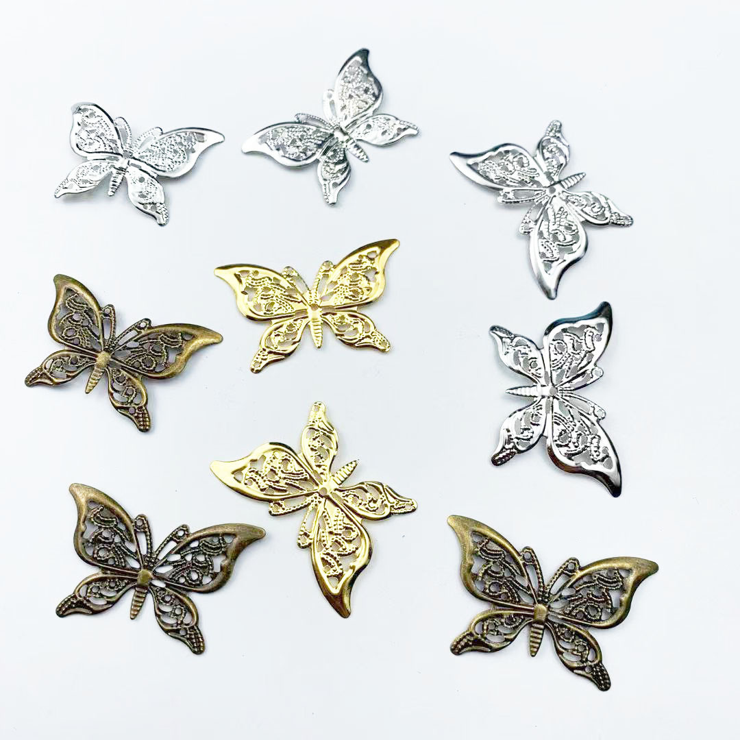 DIY aksesoris perhiasan 38*26mm logam kupu-kupu warna-warni kupu-kupu bunga potongan Cina kuno kostum hiasan kepala aksesoris