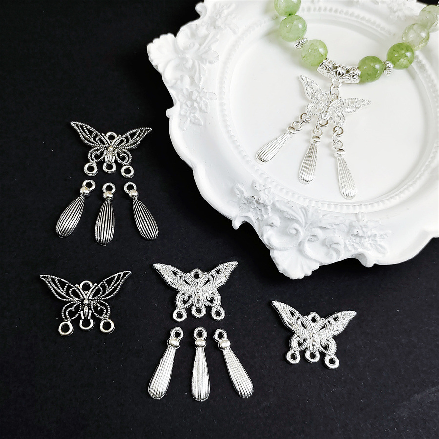 Aksesori diy kupu-kupu Aloi liontin koneksi berpori tetesan air perak Xizang gelang liontin perak kuno dengan bahan manik-manik