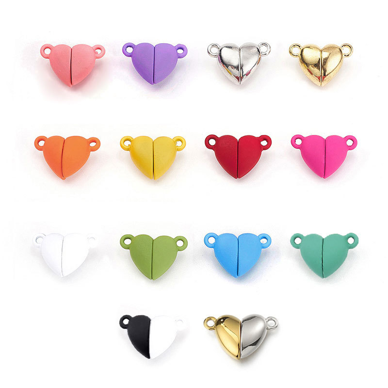 Bahan aksesoris perhiasan handmade DIY, gesper magnet bentuk hati warna-warni dari bahan zinc alloy, konektor perhiasan magnetik, gesper magnet kreatif