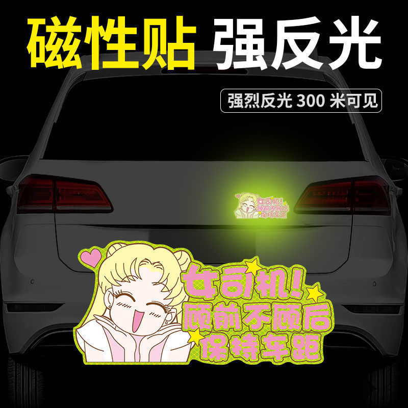 Stiker mobil magnetik lucu kreatif anak perempuan, stiker mobil magnetis lucu pemula di jalan, stiker peringatan keselamatan reflektif untuk anak perempuan