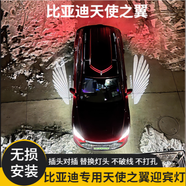 Cocok untuk BYD Song PLUSdmi/Ev Kaca Spion Angel Wing Lampu Selamat Datang Lampu Proyektor Tanah Modifikasi Mobil