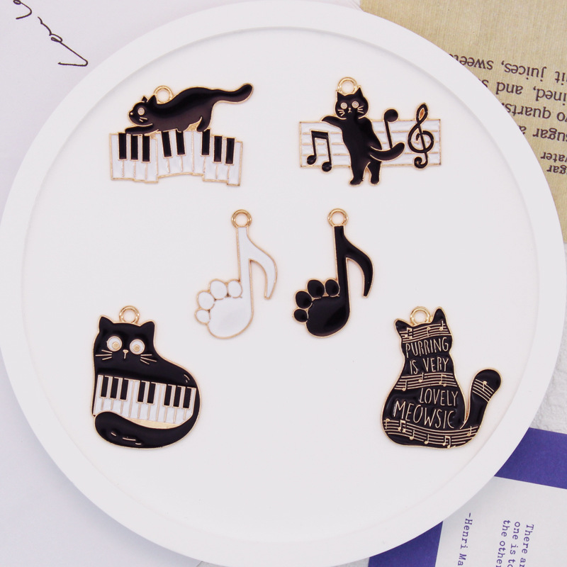 Aksesoris Paduan Perhiasan Kucing Piano DIY Kartun Lintas Batas Aksesori Liontin Kucing Hitam Aksesori Gantungan Kunci Anting
